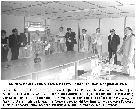 En el edificio neoclásico que hoy acoge a las Casas Consistoriales de la Villa de La Orotava, construido en 1895 según proyecto del arquitecto D. Manuel de Oraá, abrió en 1976 el Centro de Formación Profesional de La Orotava, sección delegada del Politécnico de Santa Cruz de Tenerife.